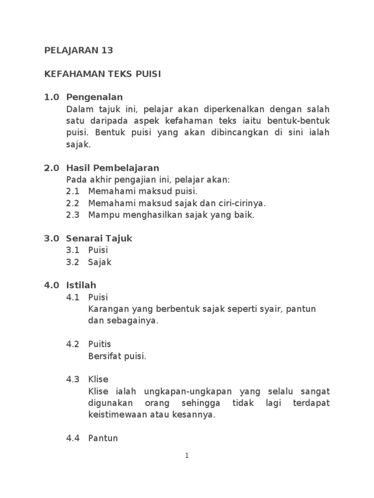 Bka Lesson 13 Kefahaman Teks Puisi