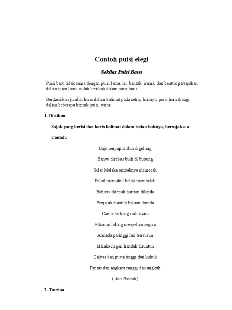 Kali ini kita akan membahas puisi baru yaitu 15 contoh puisi baru atau puisi modern balada elegi epigram himne ode romansa satire distikon terzina kuatrain kuint oktaf stanza sektet septime dan soneta dimana pada artikel sebelumnya kita telah membahas lengkap puisi baru dan puisi lama. Balada adalah puisi yang berisi cerita. Balada adalah jenis puisi baru yang berisi tentang suatu kisah atau cerita yang terdiri dari 3 bait yang masing masing dengan 8 larik.