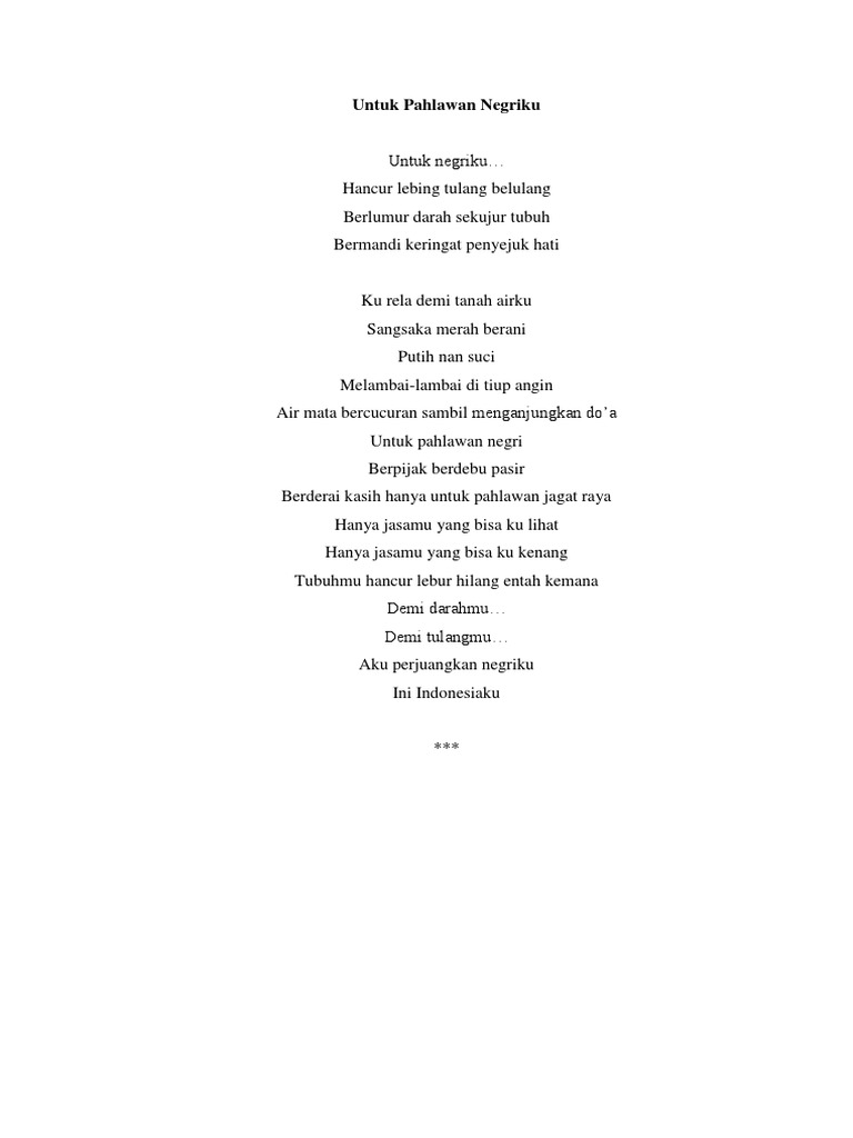 Sungguh besar pengorbananmu untuk negeriku indonesia saya. Contoh puisi tentang polisi 1 bait. Justin7D Justin7D 01052016 B.